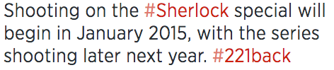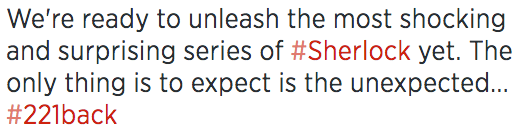 Ben Stephenson, Controller, BBC Drama, says: "Steven and Mark are ready to unleash the most shocking and surprising series of Sherlock yet. The only thing to expect is the unexpected..."